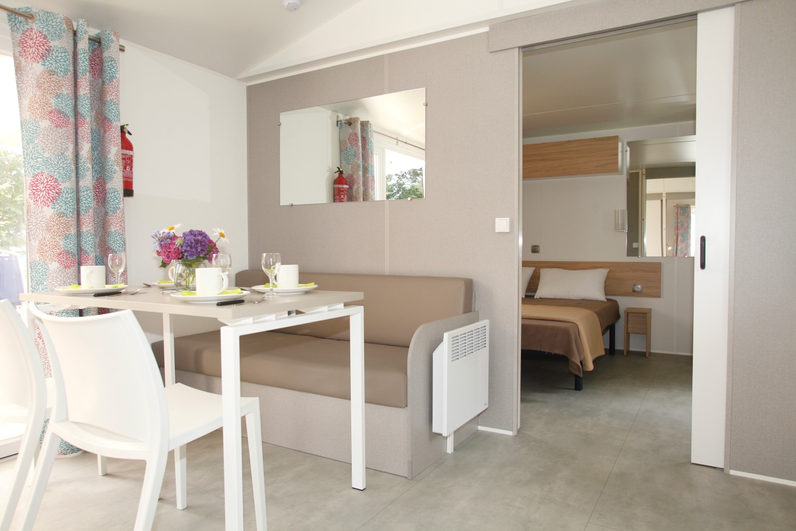 Meilleur rapport qualité/prix, découvrez notre joli mobil-home tout équipé pouvant accueillir jusqu’à 5 personnes. Pratique et douillet, le Mobil-Home Confort est le choix économique et confortable avec ses 2 chambres, sans oublier sa grande terrasse semi-couverte, son séjour avec TV et sa cuisine équipée d’un lave vaisselle.