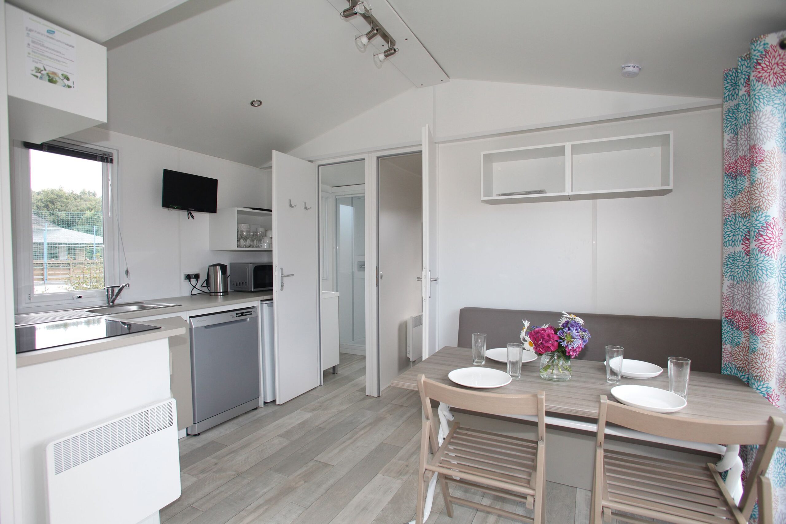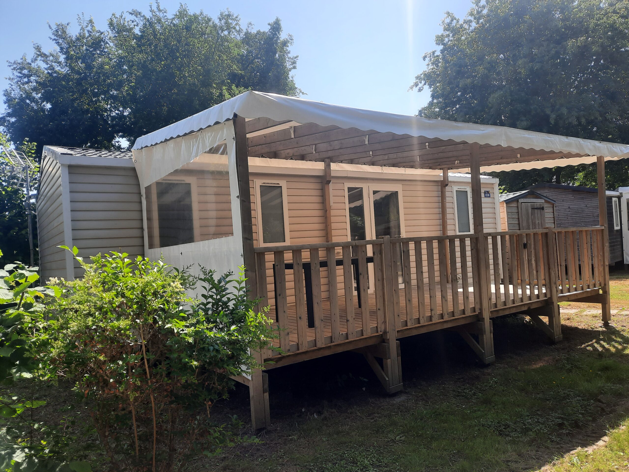 Notre Mobil Home confort 28m2 est la location parfaite pour votre séjour au camping Kerarno. Découvrez notre joli mobil-home tout équipé pouvant accueillir jusqu’à 5 personnes. Equipé et confortable notre Mobil-Home Confort est le choix économique et confortable avec ses 2 chambres, sans oublier sa grande terrasse couverte, son séjour avec TV et sa cuisine équipée d’un lave vaisselle.